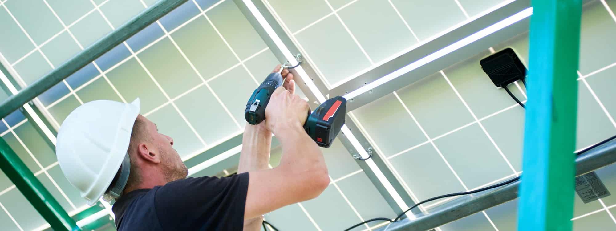 Electricien Vaux-le-Pénil - homme qui installe des panneaux solaires en extérieur